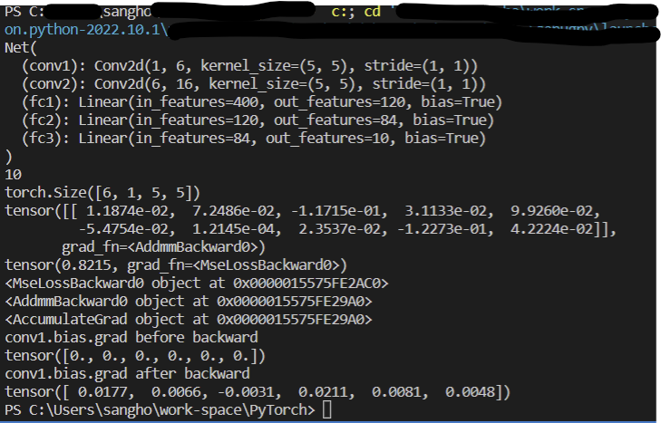 - 변화도(gradient)를 신경망의 매개변수들에 역으로 전파.