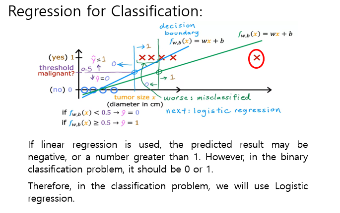 linear regression을 사용하면 예측 결과가 음수이거나 1보다 큰 숫자가 될 수 있다.