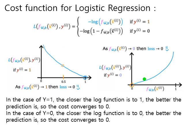 ( label 이 1 인데 예측도 1로 했을 경우 cost 는 0으로 수렴하는 것이 맞다. )