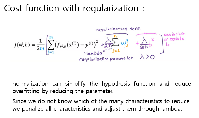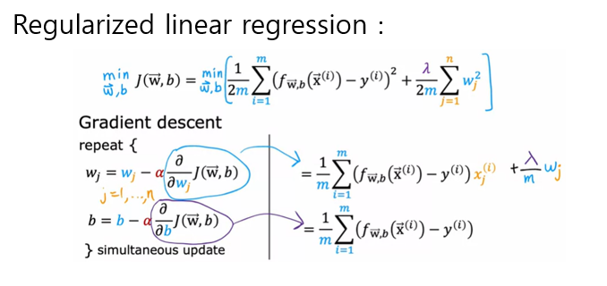 일단 많은 feature 중 어느 것을 줄여야 할지 모르기 때문에 모든 특성에 페널티를 부여하고 람다를 통해 조정할 수 있다.